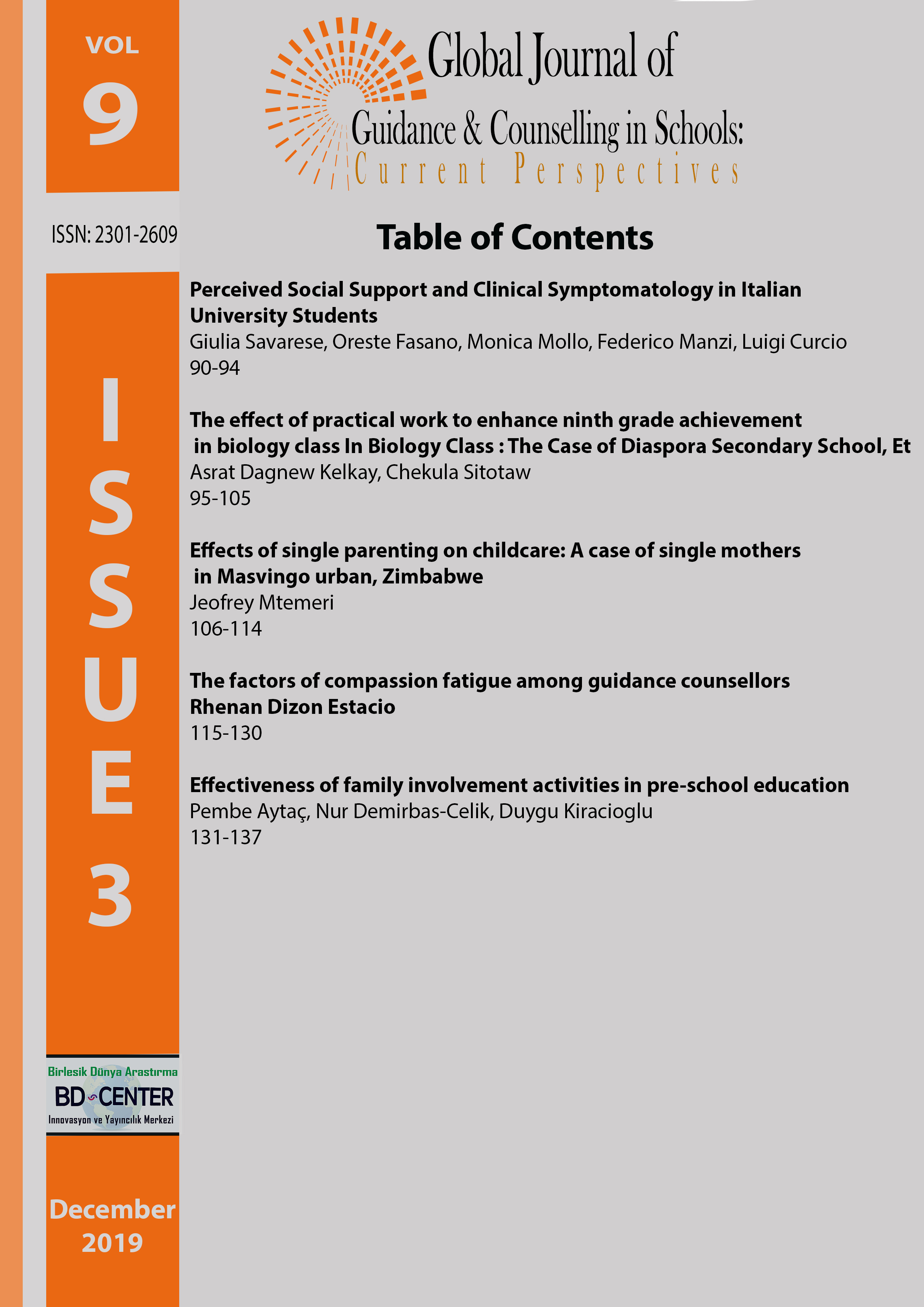 Global Journal of Guidance and Counseling in Schools: Current Perspectives