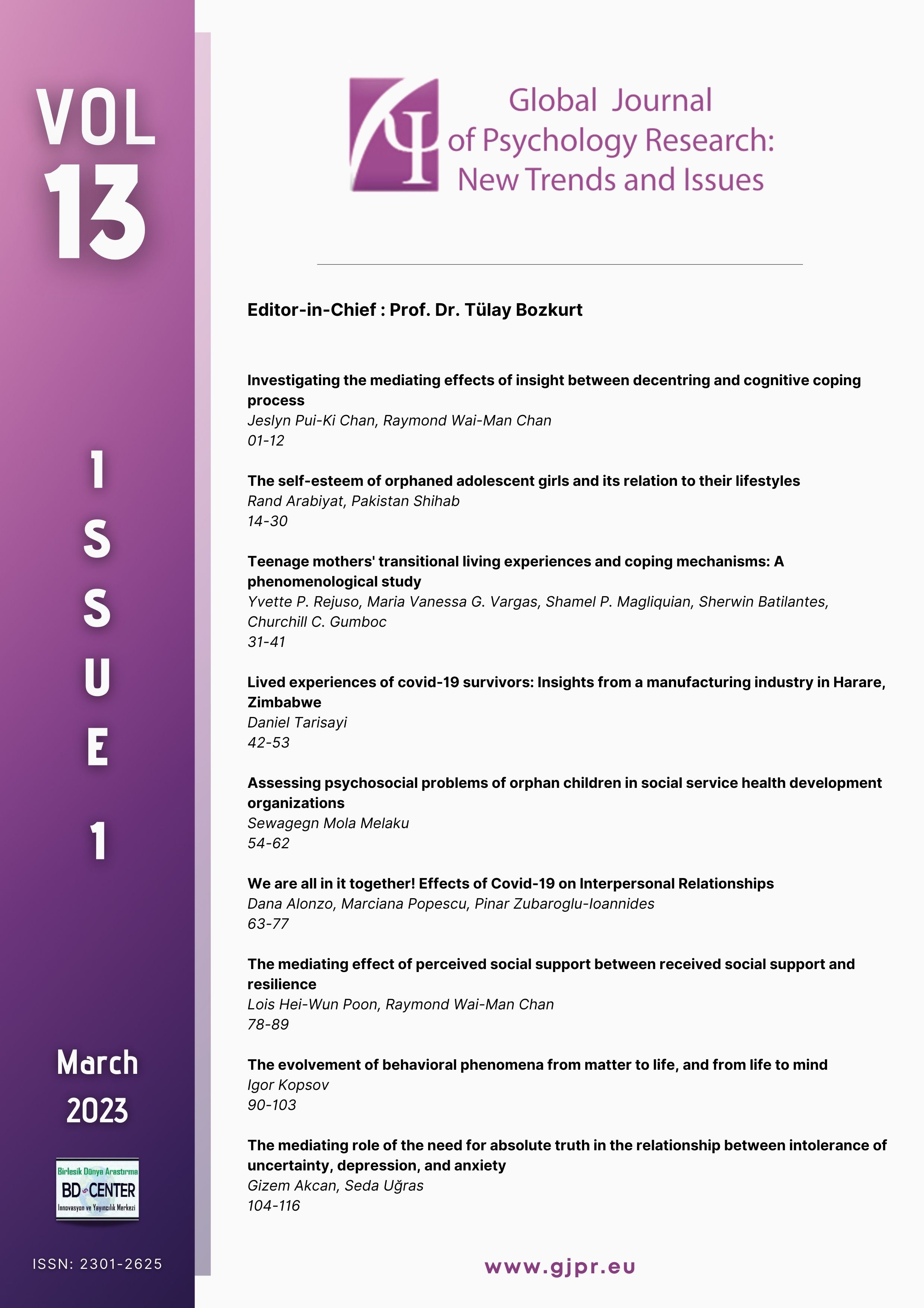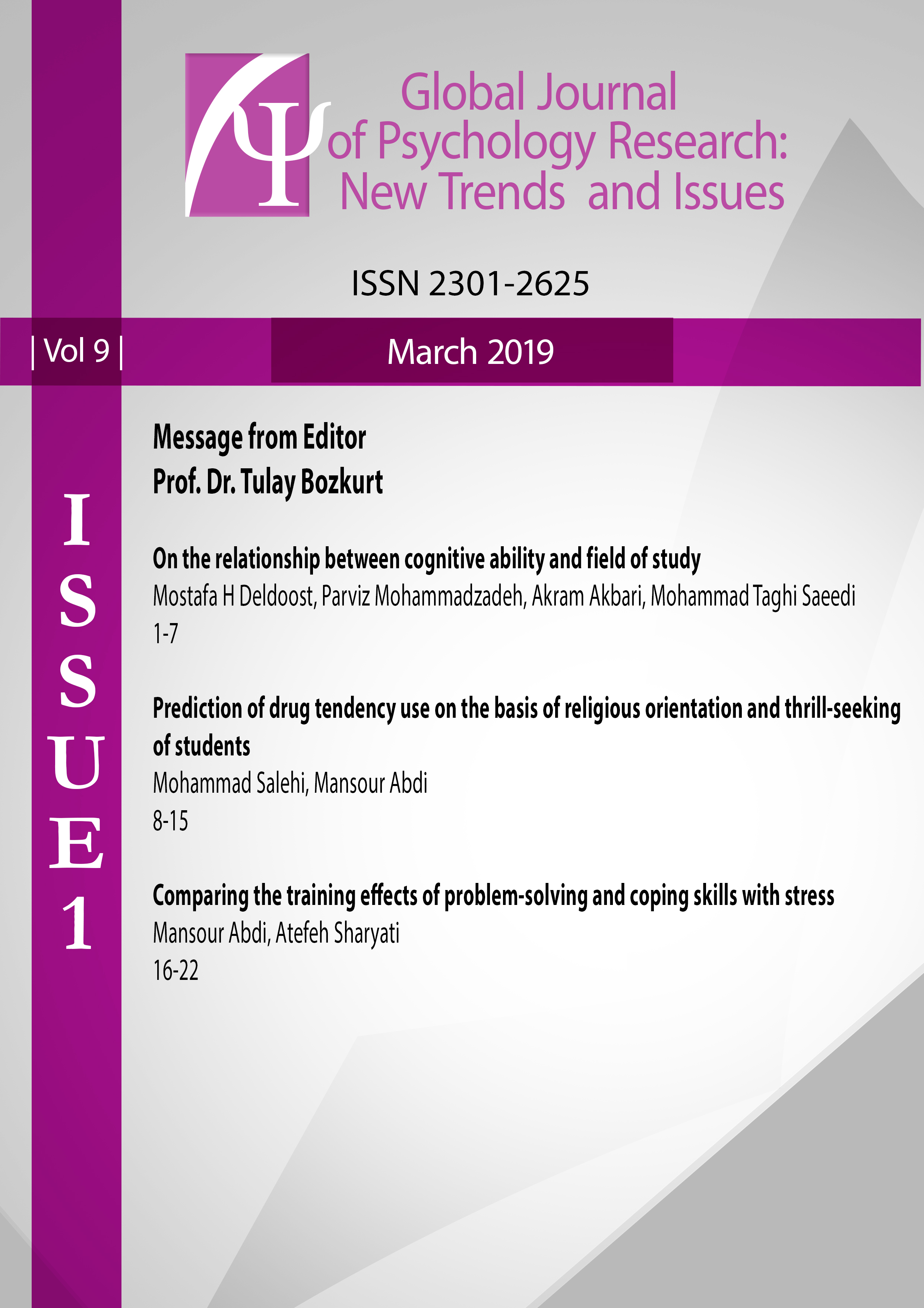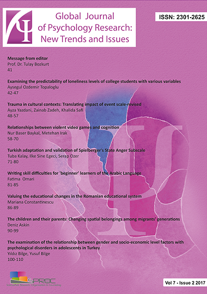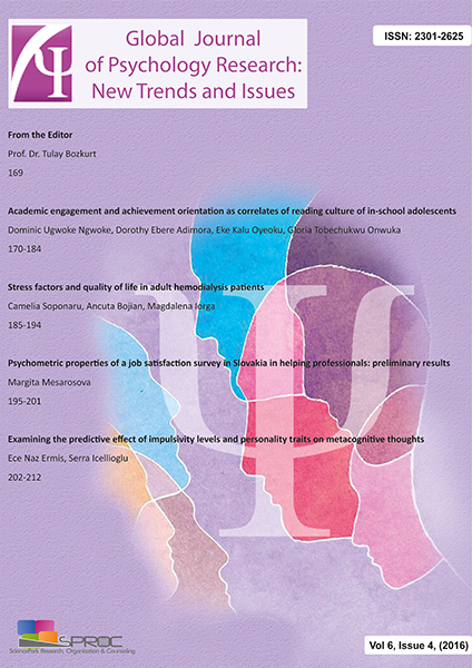 Global Journal of Psychology Research: New Trends and Issues