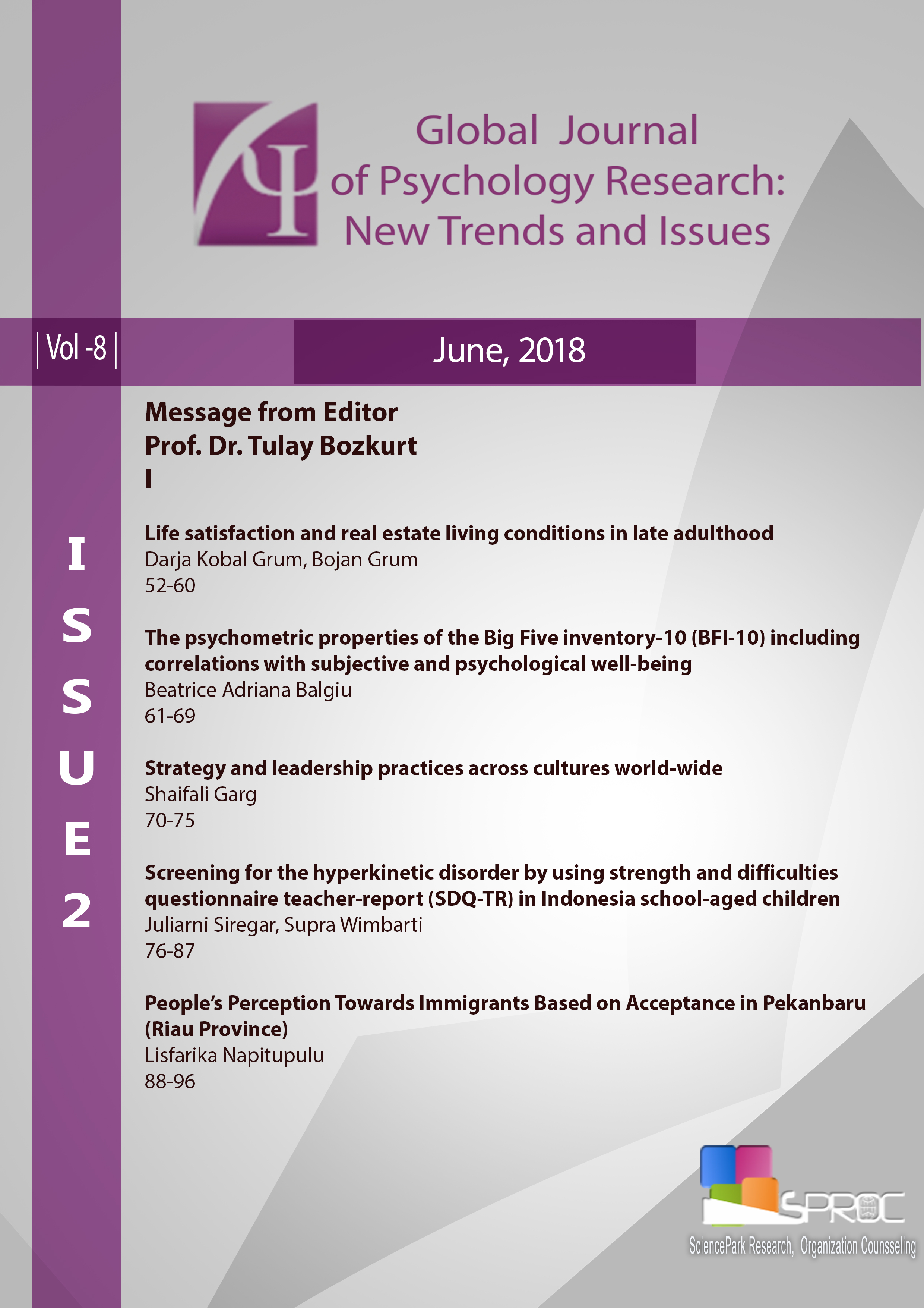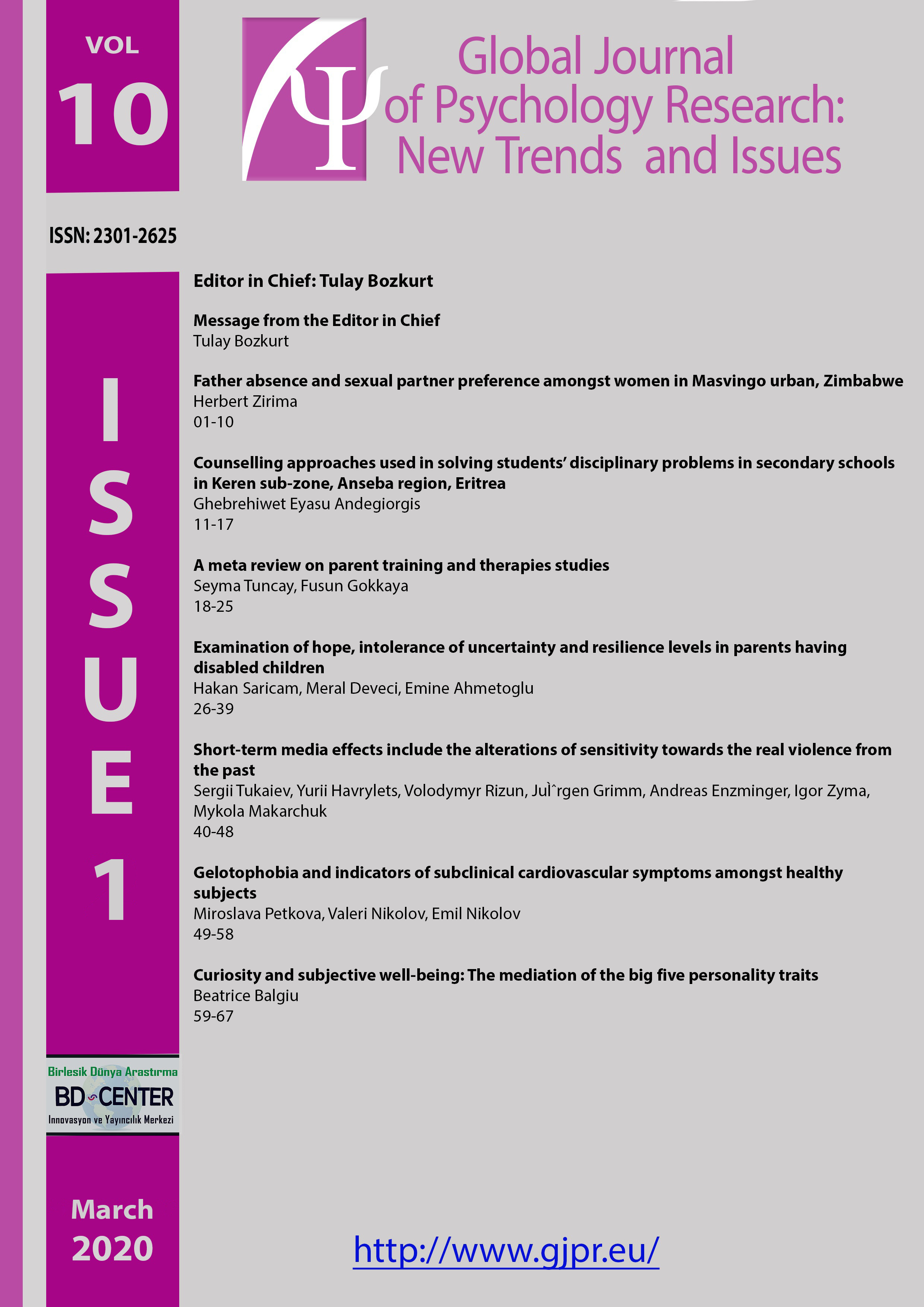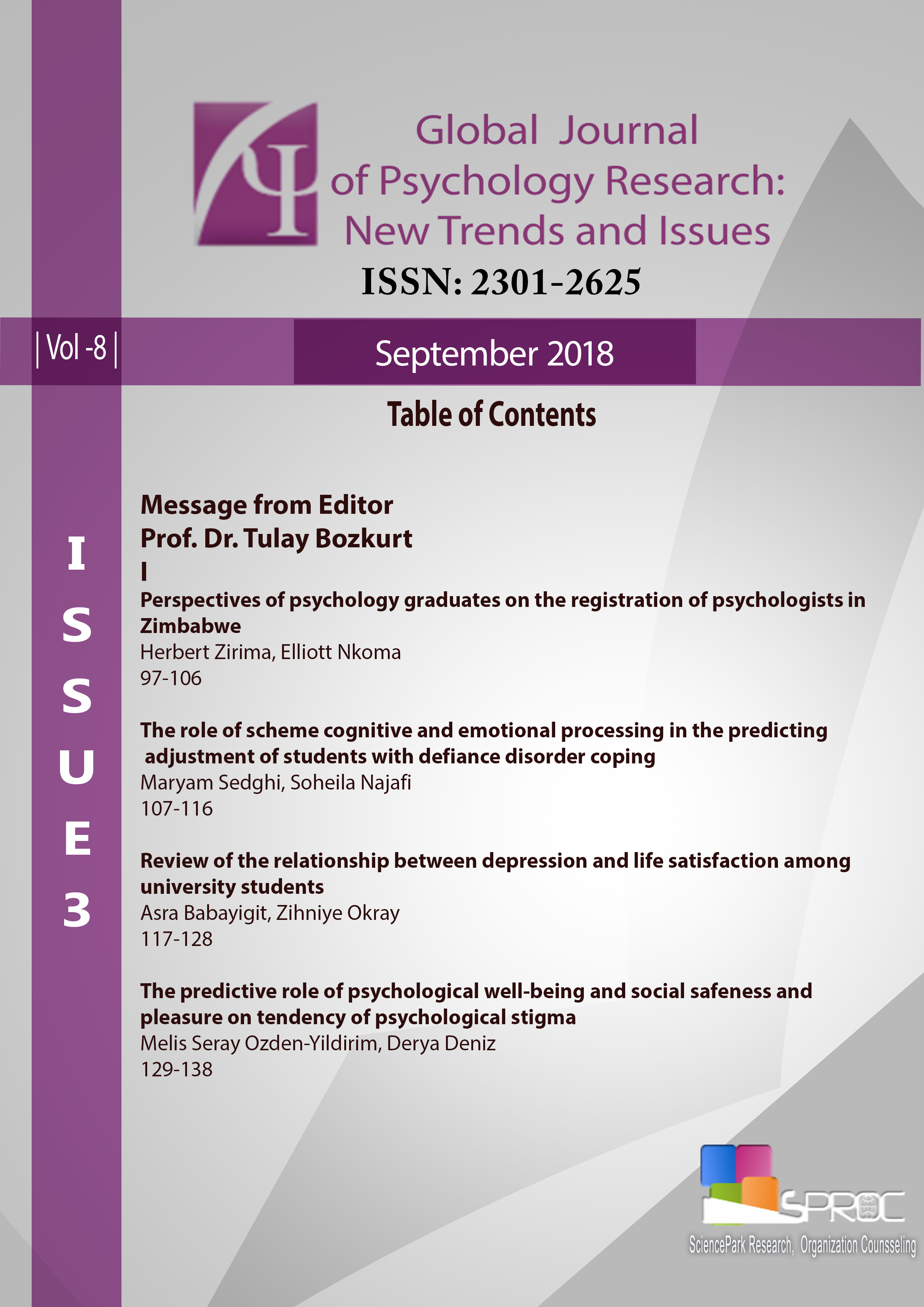 Global Journal of Psychology Research: New Trends and Issues