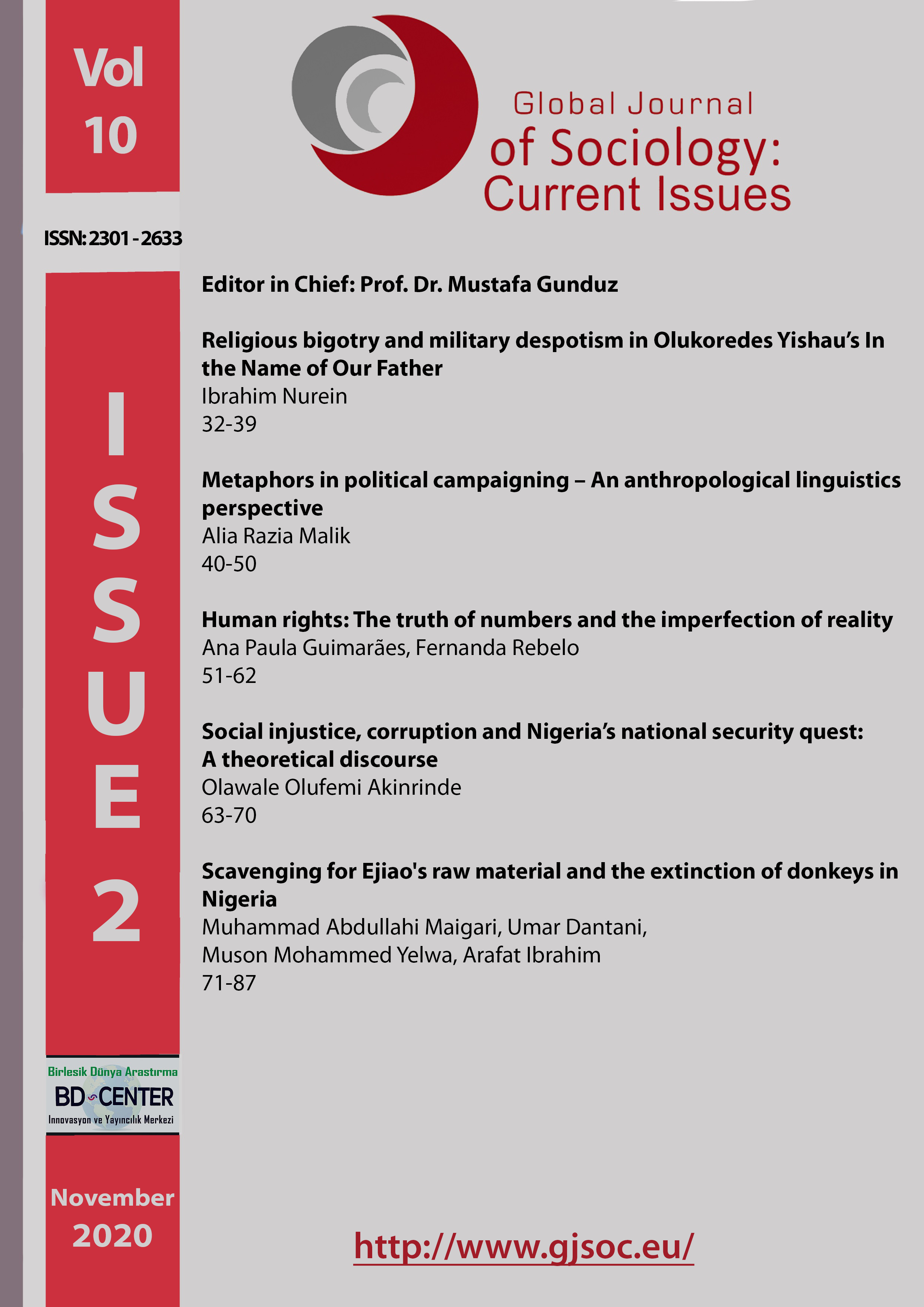 Although religious bigotry and military tyranny have been overtly delineated by the first and second generation novelists, especially the ones who witnessed the military maladministration in Nigeria, the contemporary Nigerian novelist also attempts to contribute and provide with more resources on the rights of the people and the liberty to be free from the imposition of religious and/or political doctrines that are socially constructed upon the people. In the Nigerian context, religious and political/military despotism are considered to go hand in hand since their ideologies formulate part of the hegemonic, determinist superstructures that push the masses to be at the corner of receiving end. Within Nigeria’s copious output of literature written in English, this paper, using Yishau’s debut novel In the Name of Our Father as a case study, attempts to develop a bird’s eye view of the religious and military issues in Nigerian society. Adopting the praxis of Marxist critical thinking, this paper acknowledges how the author, Yishau, allows his intellectual capacity in the form of a novel to direct his writing in relation to the religious bigotry and military despotism that spearheaded Nigerian society, most significantly in the military regime between 1966 and 1999. The outcome of this paper is that Yishau has accorded a pedigree for himself on the shore of Nigerian novels by leveraging critical attention to unfold the thematic precepts of religious bigotry and military despotism in his first literary, textual appearance.